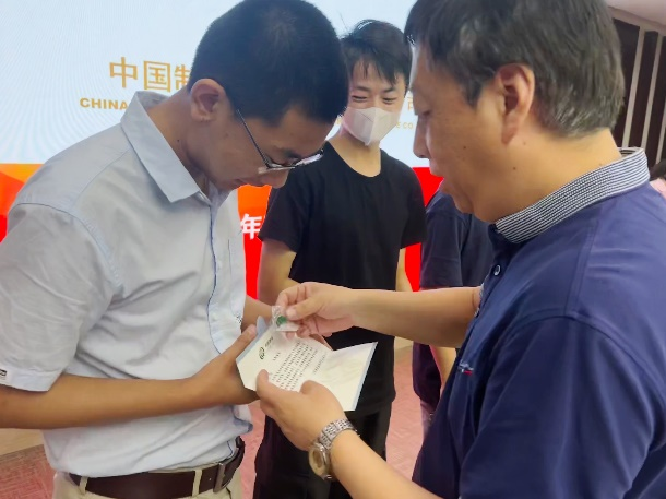 院領(lǐng)導(dǎo)向新員工贈(zèng)送院徽和迎新賀卡