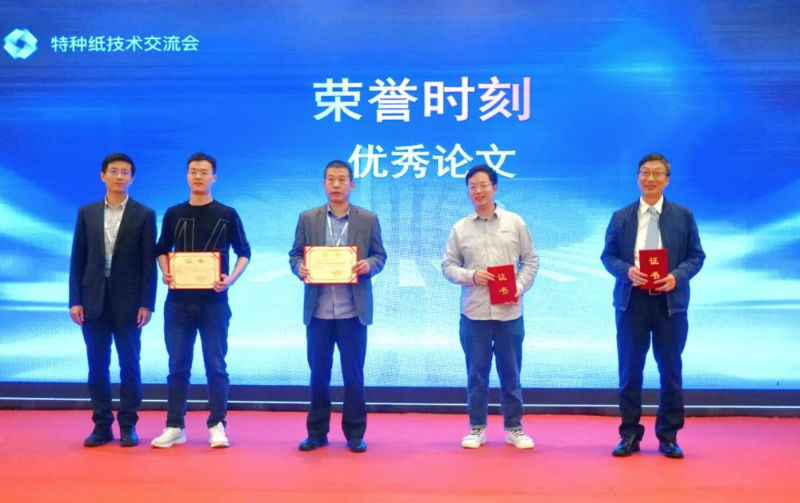 特種紙委員會從本屆特種紙技術(shù)報(bào)告會論文集中評選出4篇優(yōu)秀論文,中國制漿造紙研究院副總經(jīng)理田超為獲獎?wù)撐淖髡哳C發(fā)了證書。