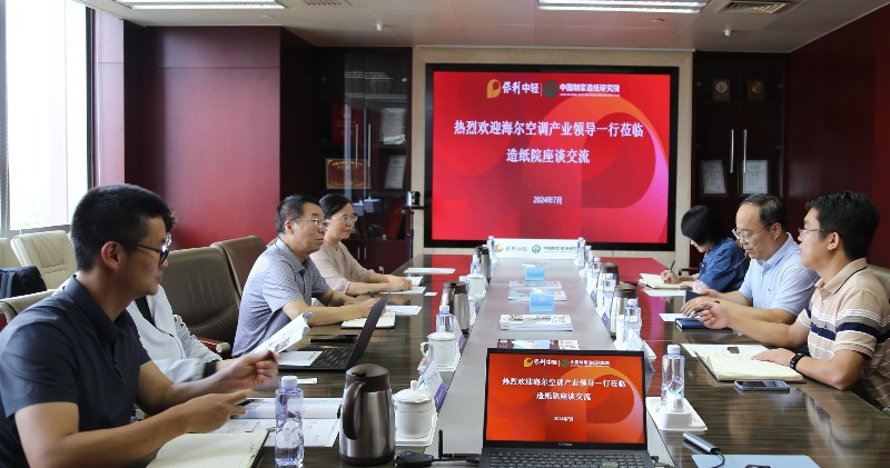 近日,海爾智家空調產業(yè)包裝研究所所長朱振學一行到訪中國制漿造紙研究院(以下簡稱“中國造紙院”)。中國造紙院紙基功能新材料事業(yè)部、包裝技術研發(fā)中心等相關部門負責人熱情接待了朱振學一行,并進行座談交流。