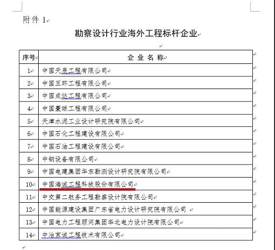 “海外工程標桿企業(yè)”是中國勘察設計協會為表彰在海外市場開拓中取得優(yōu)異成績的企業(yè)而設立,本次有14家企業(yè)入圍名錄,是從全國兩萬四千多家勘察設計單位中擇優(yōu)選出的。