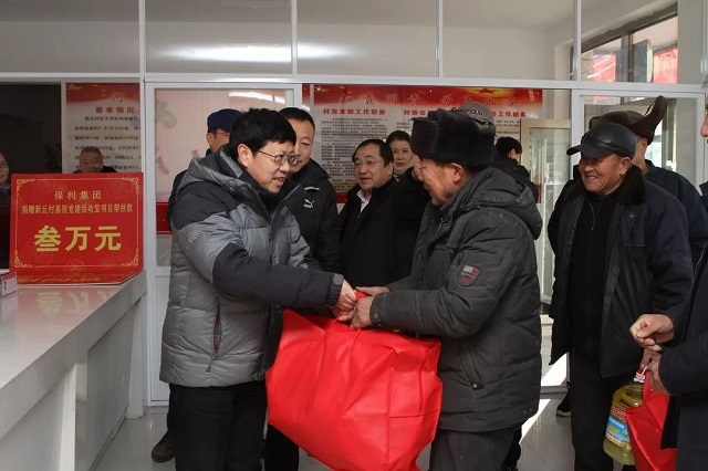 “感謝保利集團(tuán)和中輕集團(tuán)對(duì)我們的關(guān)懷和捐贈(zèng)!”在喀喇沁旗河北街道辦事處進(jìn)行的“愛在喀喇沁 扶貧送溫暖”2020年春節(jié)捐贈(zèng)儀式上,當(dāng)新丘村支部書記王有良、村長(zhǎng)郭瑞東分別從王珂靈、陳曉麗手中接過黨員活動(dòng)室建設(shè)幫扶款、春節(jié)慰問物資的時(shí)候,他們發(fā)自肺腑地表示感謝,并向保利集團(tuán)贈(zèng)送了寫著“深入基層,精準(zhǔn)扶貧,情系百姓,溫暖人心”的錦旗。三萬元的黨員活動(dòng)室建設(shè)經(jīng)費(fèi),可以讓村里的黨員能夠擁有一個(gè)更好的學(xué)習(xí)活動(dòng)場(chǎng)所;捐贈(zèng)給全村70歲以上老人和所有貧困戶的糧、油、棉被等生活用品,則能夠切實(shí)改善他們的生活。