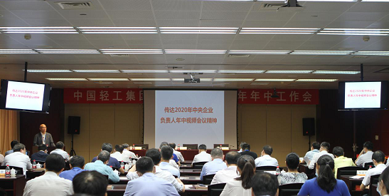 7月24日,中輕集團(tuán)召開(kāi)2020年年中工作會(huì),總結(jié)上半年工作,分析當(dāng)前形勢(shì),研究部署下半年重點(diǎn)任務(wù)。中輕集團(tuán)董事長(zhǎng)、黨委書(shū)記張萬(wàn)順傳達(dá)國(guó)資委和保利集團(tuán)有關(guān)會(huì)議精神并做總結(jié)講話(huà),總經(jīng)理郭建全做了上半年工作報(bào)告。會(huì)議采取視頻會(huì)議的形式,保利集團(tuán)戰(zhàn)略投資中心張旻部長(zhǎng),中輕集團(tuán)領(lǐng)導(dǎo)班子、總部中層以上領(lǐng)導(dǎo)干部、各二級(jí)子公司黨政主要負(fù)責(zé)人等在主會(huì)場(chǎng)參加會(huì)議,各子公司在全國(guó)16個(gè)分會(huì)場(chǎng)共400余人參加會(huì)議。