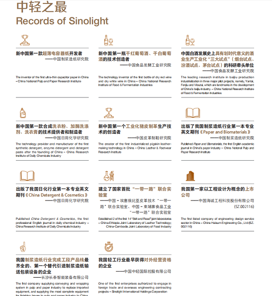 中輕集團作為國家第四批創(chuàng)新型試點企業(yè),擁有輕工相關(guān)行業(yè)貫通科研、設(shè)計、智造等完整產(chǎn)業(yè)鏈的綜合集成服務(wù)能力,是我國輕工行業(yè)科技進步和行業(yè)轉(zhuǎn)型升級的引領(lǐng)者,始終發(fā)揮著國有企業(yè)在輕工行業(yè)的控制力、影響力和帶動力。