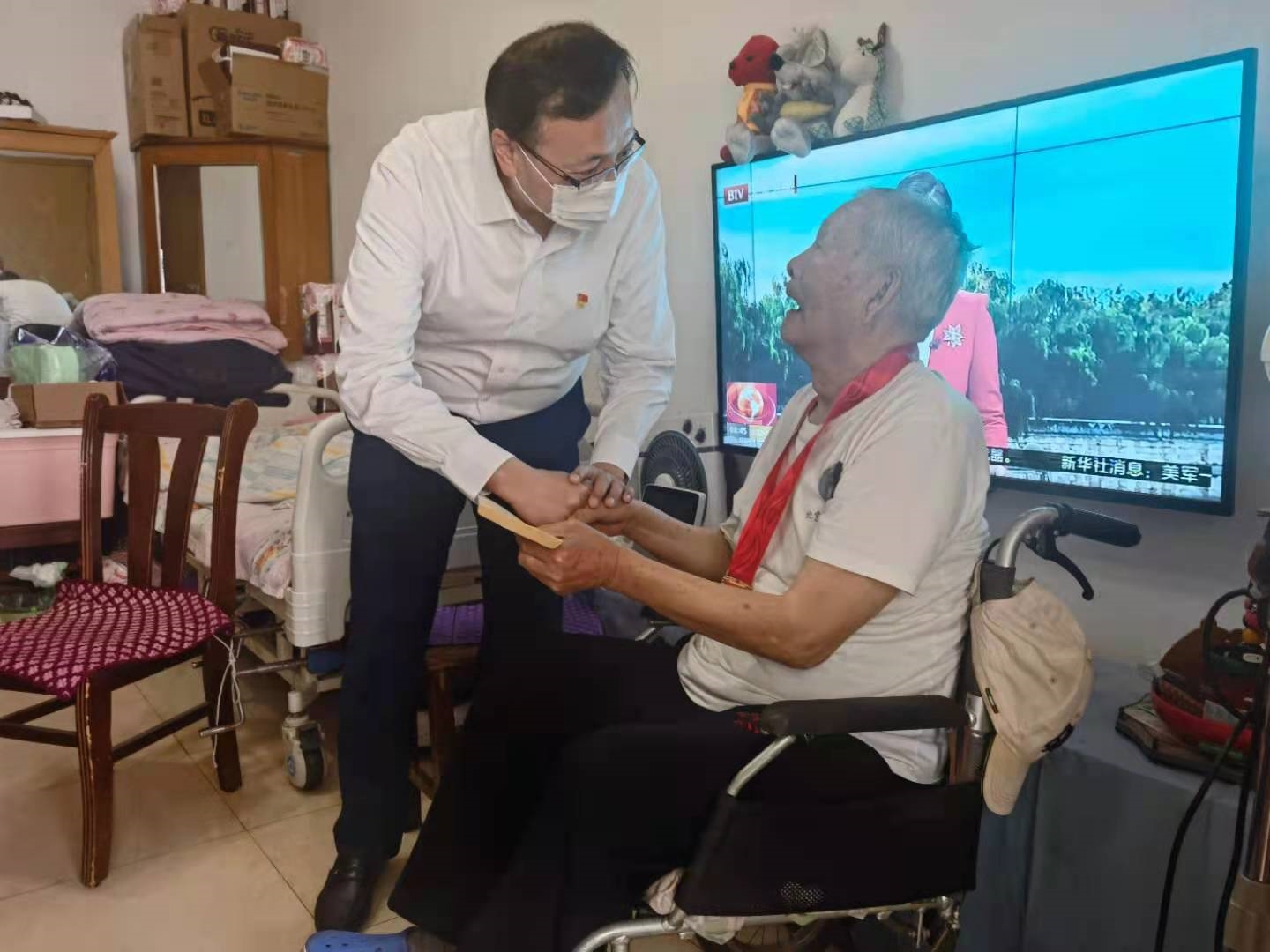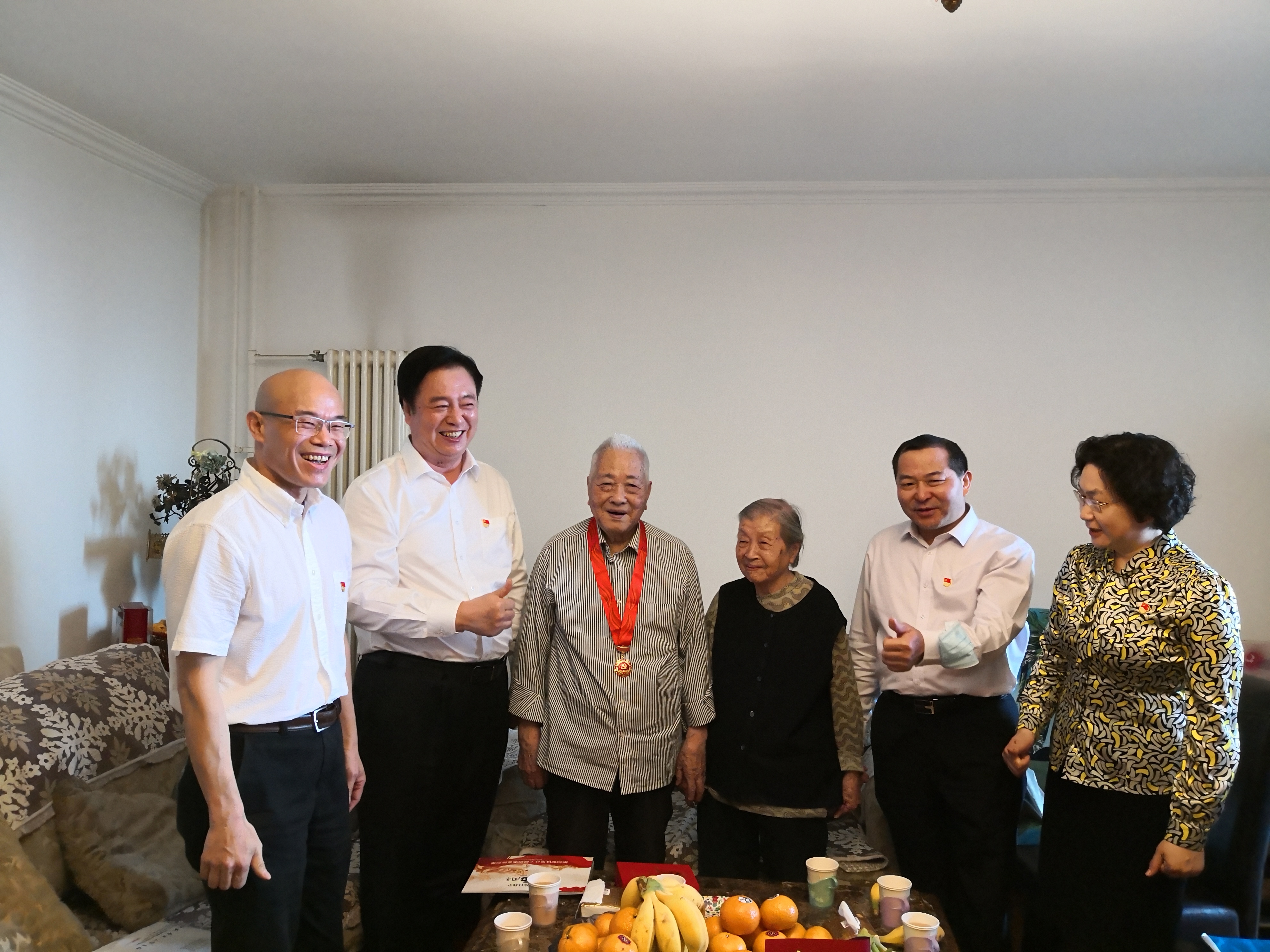6月30日上午,劉軍才、曹文素、崔久衡一行前往72年黨齡的梁清枝老先生家中慰問,詳細詢問了梁老的身體情況和生活狀況,叮囑梁老要保重身體,并祝福梁老身體健康、生活幸福。