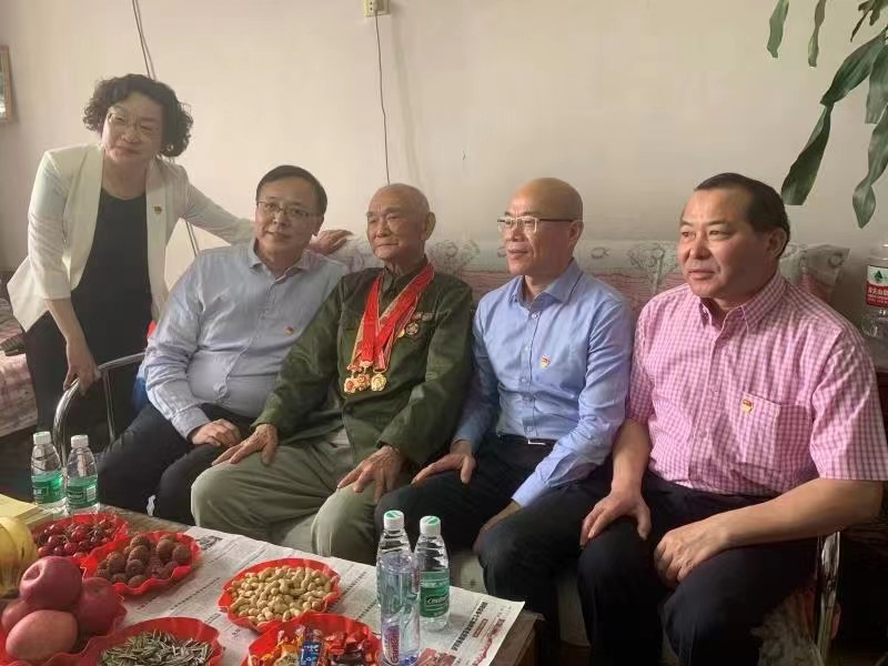 6月18日上午,劉軍才、張萬順、郭建全、曹文素一行前往73年黨齡的趙金生老先生家中慰問。1948年,趙老在東北民主聯(lián)軍六隊警衛(wèi)營行軍舟戰(zhàn)斗中立大功一次;1949年,在四野43軍司令部四連南下行軍中立功一次;建國后,遠赴朝鮮參加抗美援朝戰(zhàn)爭。劉軍才一行仔細觀摩趙老獲得的多枚紀念章,對他為黨的解放事業(yè)和新中國建設(shè)所做的貢獻表示感謝。