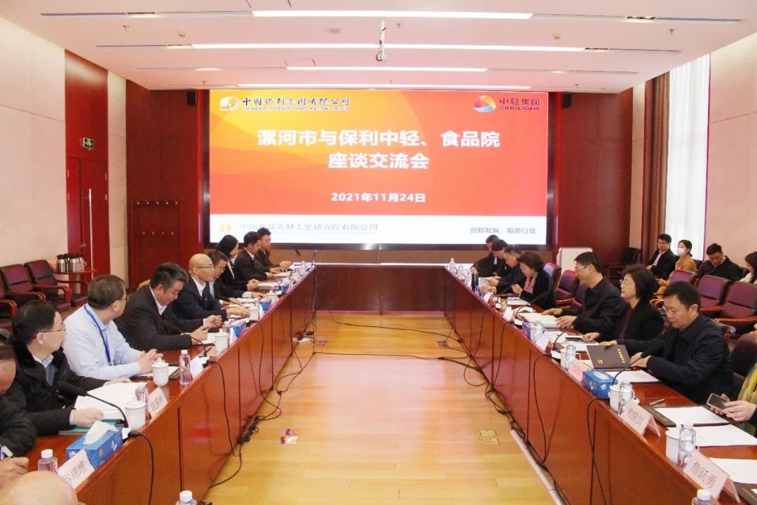 2021年11月24日上午,中國(guó)保利集團(tuán)有限公司(以下簡(jiǎn)稱“保利集團(tuán)”)黨委常委、副總經(jīng)理,中國(guó)輕工集團(tuán)有限公司(以下簡(jiǎn)稱“保利中輕”)黨委書(shū)記、董事長(zhǎng)張萬(wàn)順,保利中輕紀(jì)委書(shū)記童云翔、副總經(jīng)理蔡木易在中國(guó)食品發(fā)酵工業(yè)研究院有限公司(以下簡(jiǎn)稱“中國(guó)食品研究院”)會(huì)見(jiàn)河南省漯河市市委書(shū)記劉尚進(jìn)、市政協(xié)主席呂巖、市委常委、宣傳部部長(zhǎng)、市政府副市長(zhǎng)常英敏一行,雙方就推動(dòng)未來(lái)合作進(jìn)行交流探討。