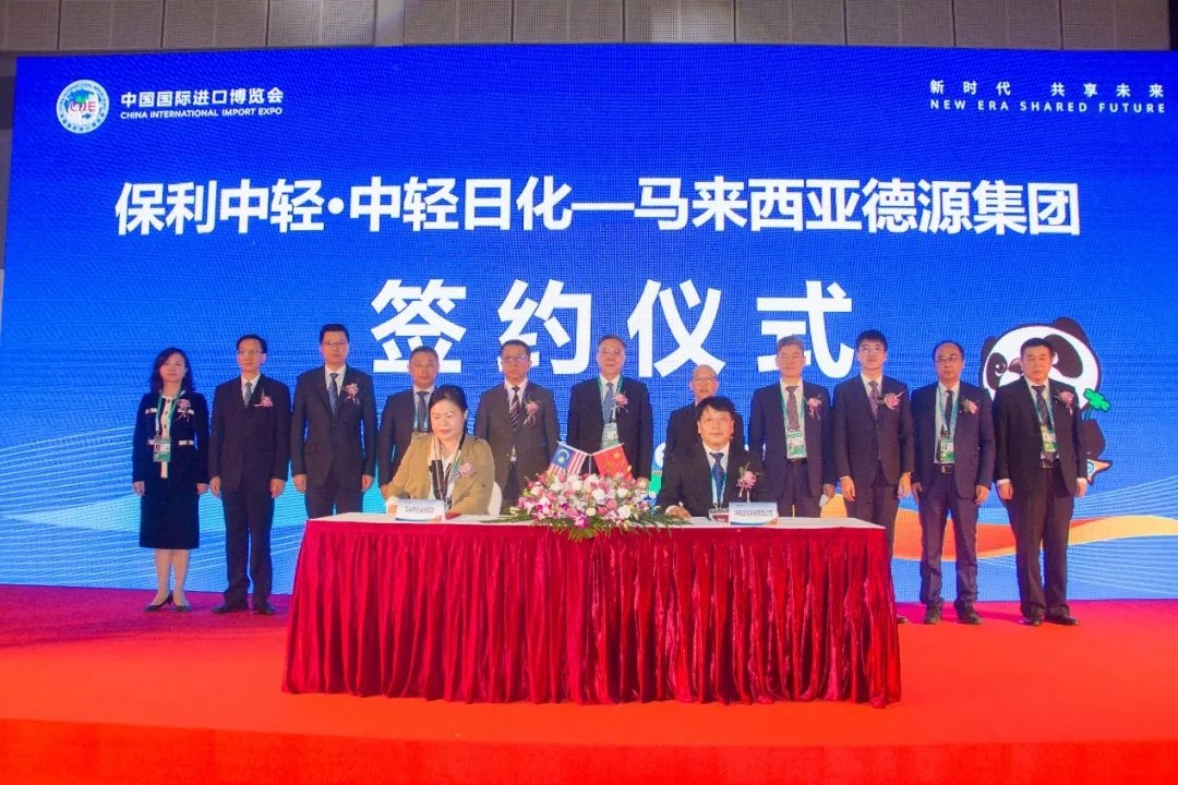 11月7日下午,在第四屆中國國際進口博覽會上,保利中輕所屬中輕日化科技有限公司(以下簡稱中輕日化)與馬來西亞德源集團(以下簡稱德源集團)簽署采購協(xié)議。保利集團黨委常委、副總經(jīng)理張曦,保利中輕總經(jīng)濟師趙國昂,保利集團戰(zhàn)投中心副主任杜鵬,中輕日化董事長耿濤、總經(jīng)理封益民出席簽約儀式。