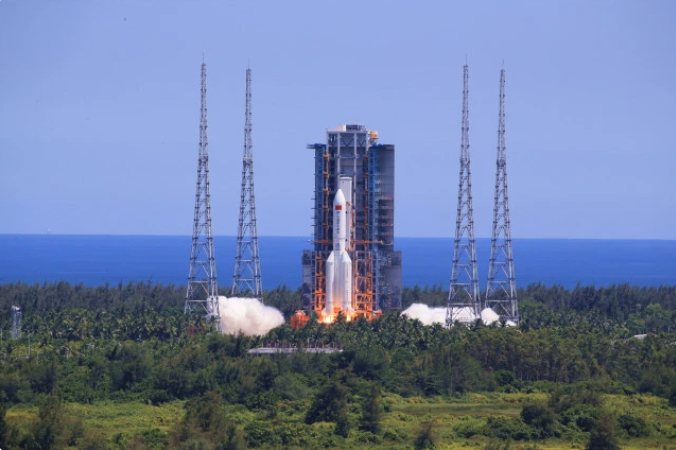 長(zhǎng)征五號(hào)B遙三運(yùn)載火箭搭載中國(guó)空間站問(wèn)天實(shí)驗(yàn)艙點(diǎn)火發(fā)射(央廣網(wǎng))