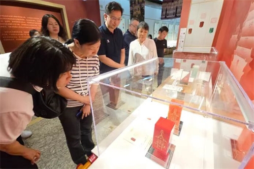 參觀中,大家認(rèn)真聆聽講解,仔細(xì)觀摩展品。一枚枚精美別致的印章,將新材料與篆刻文化完美融合,玻璃微珠、先進(jìn)陶瓷、復(fù)合材料、特種水泥、碲化鎘發(fā)電玻璃等新材料印章讓人應(yīng)接不暇,生動(dòng)展現(xiàn)了北京老城永定門到鐘鼓樓15個(gè)核心遺產(chǎn)景觀、建筑布局和歷史文化價(jià)值。在感受大眾篆刻藝術(shù)無(wú)窮魅力的同時(shí),仿佛置身于北京中軸線氣勢(shì)恢宏、秩序井然的城市建筑群中,深刻感受北京中軸線作為城市文化脊梁的重要意義。