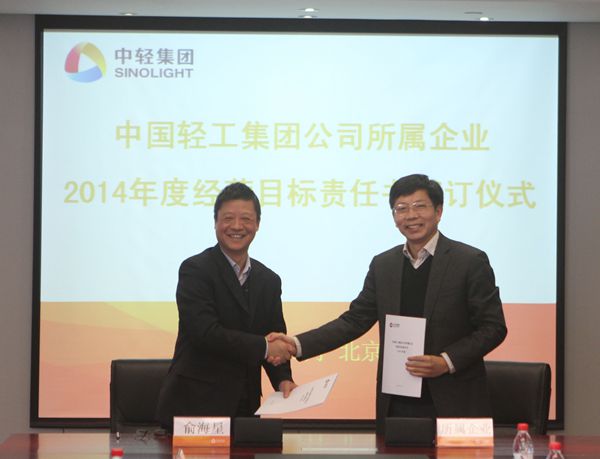 集團(tuán)公司總經(jīng)理俞海星與中輕物產(chǎn)公司總經(jīng)理錢小林簽訂經(jīng)營(yíng)目標(biāo)責(zé)任書