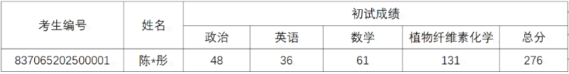 根據(jù)《中國制漿造紙研究院有限公司2025年碩士研究生招生復試錄取辦法》,現(xiàn)將一志愿報考我院考生參加復試名單公布如下: