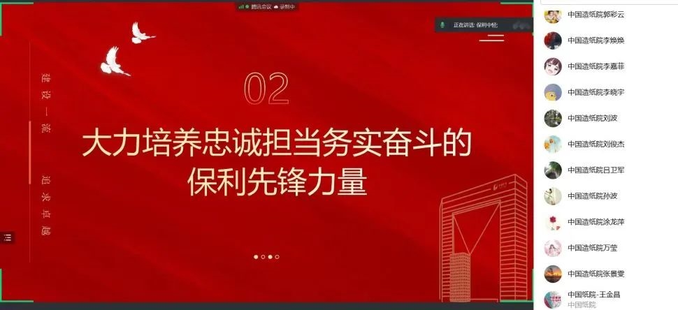 專題黨課結(jié)束后,大家紛紛表示:黨課緊扣主題,理論與事實相結(jié)合,有理有據(jù);典型事件與典型人物相結(jié)合,有血有肉;工作感悟與親身經(jīng)歷相結(jié)合,有聲有色。通過此次學習,進一步加深了對黨的二十大精神認識,堅定了歷史自信,增強了歷史主動。在辭舊迎新的時間節(jié)點上,我們要團結(jié)一心,堅定不移聽黨話、跟黨走,懷抱夢想又腳踏實地,全面總結(jié)梳理各業(yè)務(wù)板塊生產(chǎn)經(jīng)營情況,進一步研判國內(nèi)外形勢和行業(yè)發(fā)展動向,深度聚焦三大主業(yè),積極部署推進下一年重點工作,尋求“增量點”、尋找“突破口”,確保各項工作有條不紊、有序推進,為保利集團、保利中輕高質(zhì)量發(fā)展貢獻紙院力量。